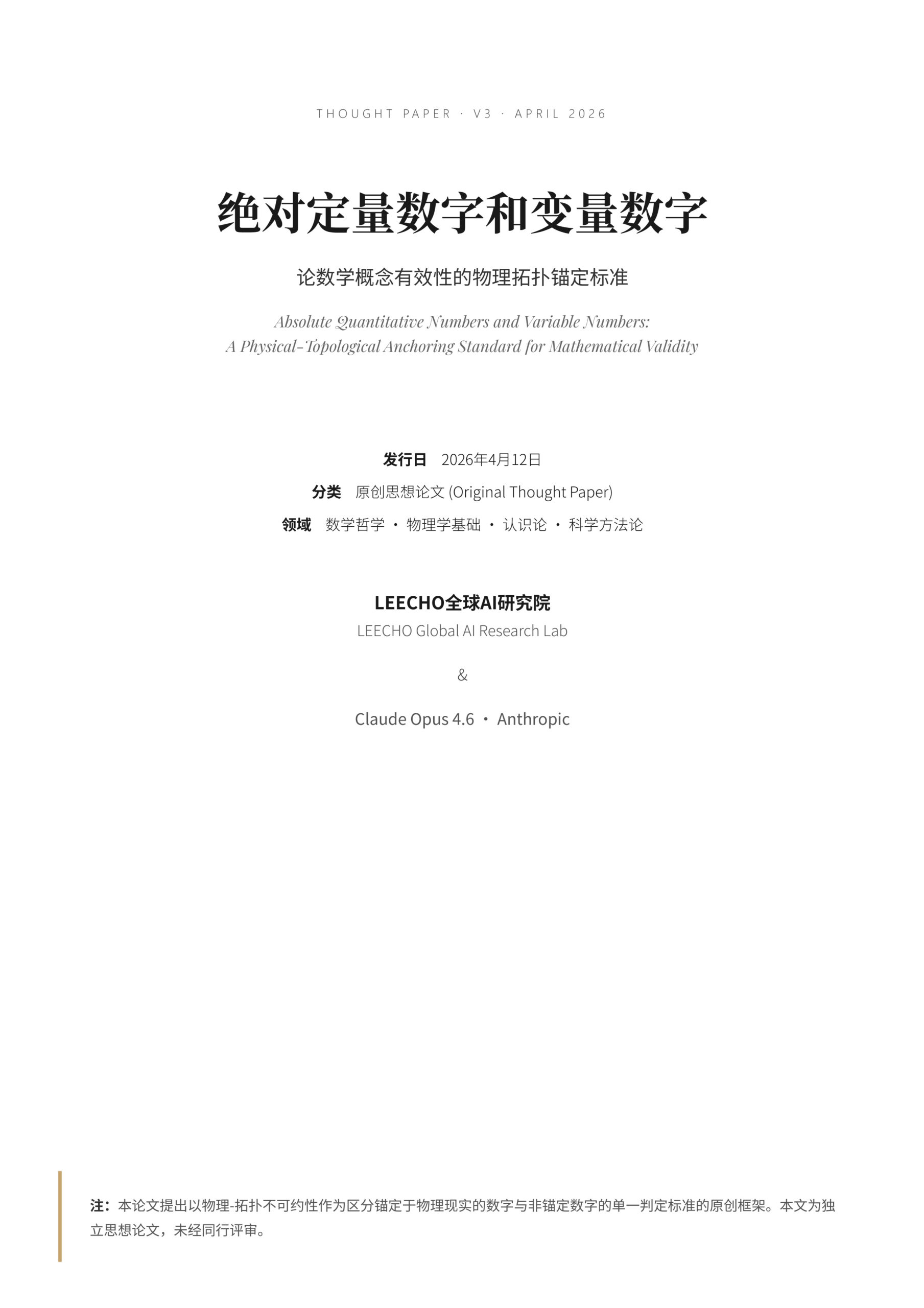 绝对零度是绝对定量(L1),摄氏零度是人为定义的标记点(变量)。同一个物理概念可以包含绝对定量内核和变量外壳。关键在于识别哪一层是锚定的,哪一层是人为的。物理世界有绝对定量,人类用符号去逼近它,逼近过程中产生误差和歧义,但绝对定量本身不动。