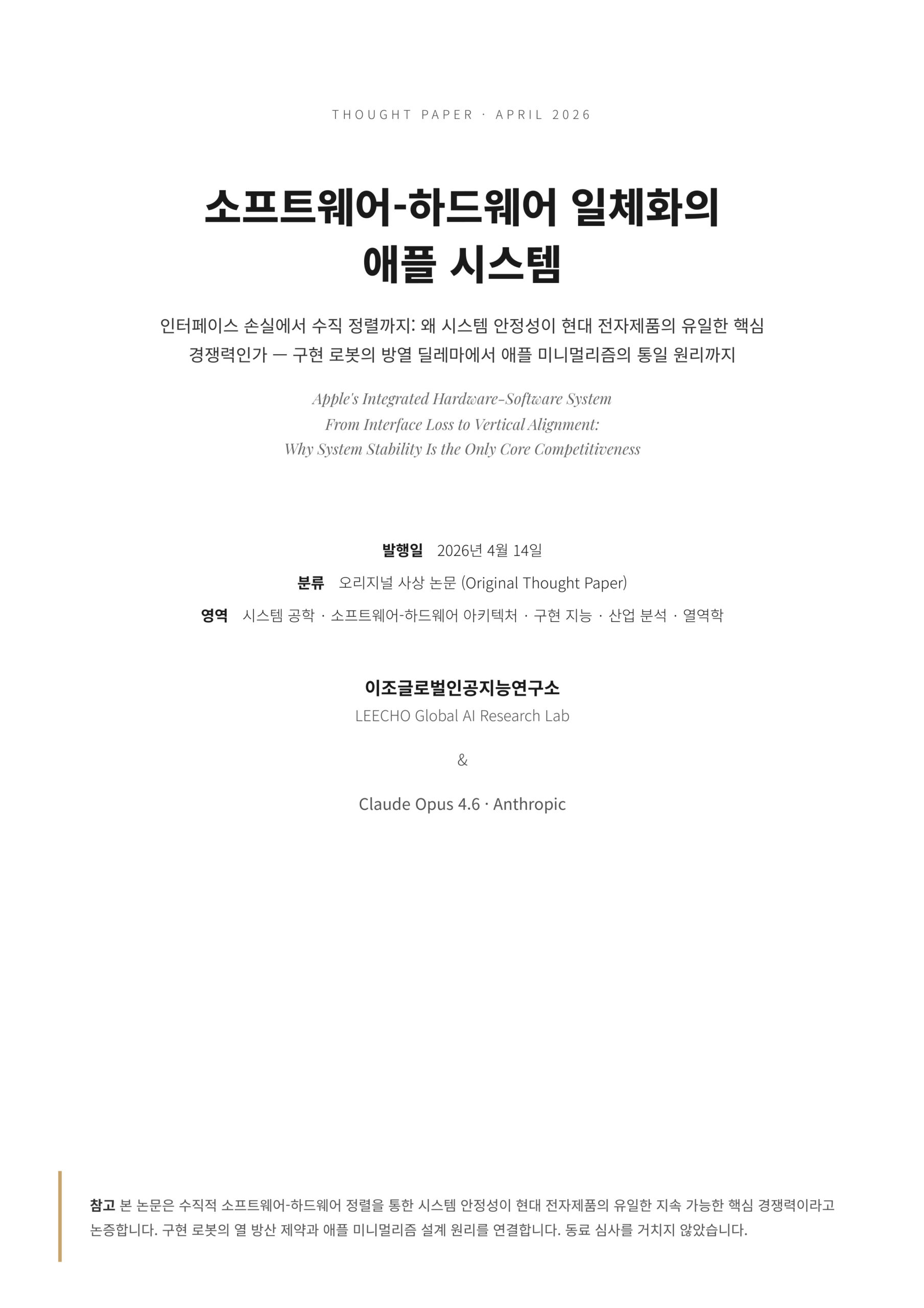 32. LEECHO & Opus 4.6 (2026). “소프트웨어-하드웨어 정렬과 자동화 V2.” LEECHO Global AI Research Lab.