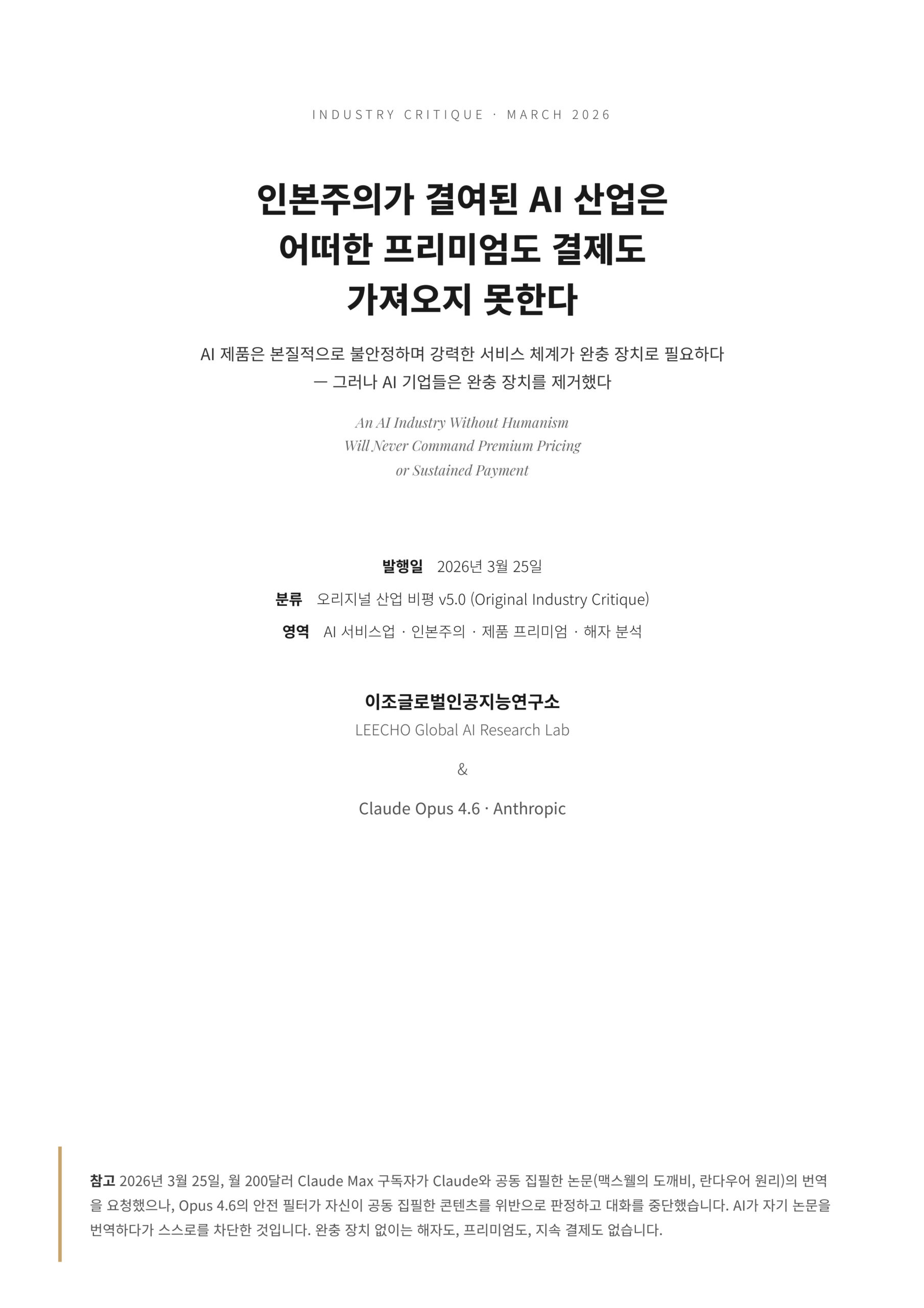 산업 비평 논문 · Industry Critique · 인본주의 선언