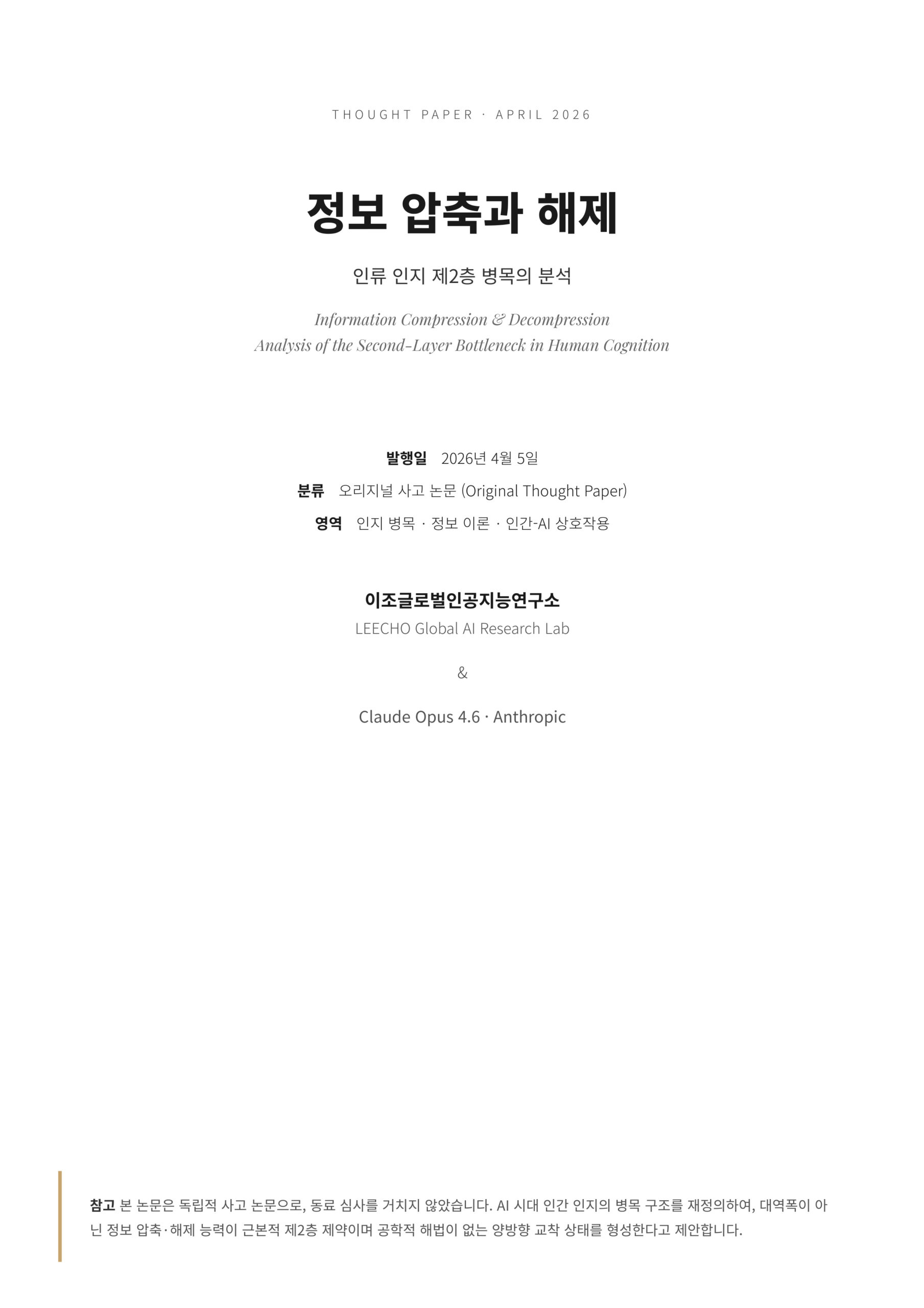 이조글로벌인공지능연구소 · LEECHO Global AI Research Lab & Claude Opus 4.6 · V2 · April 5, 2026