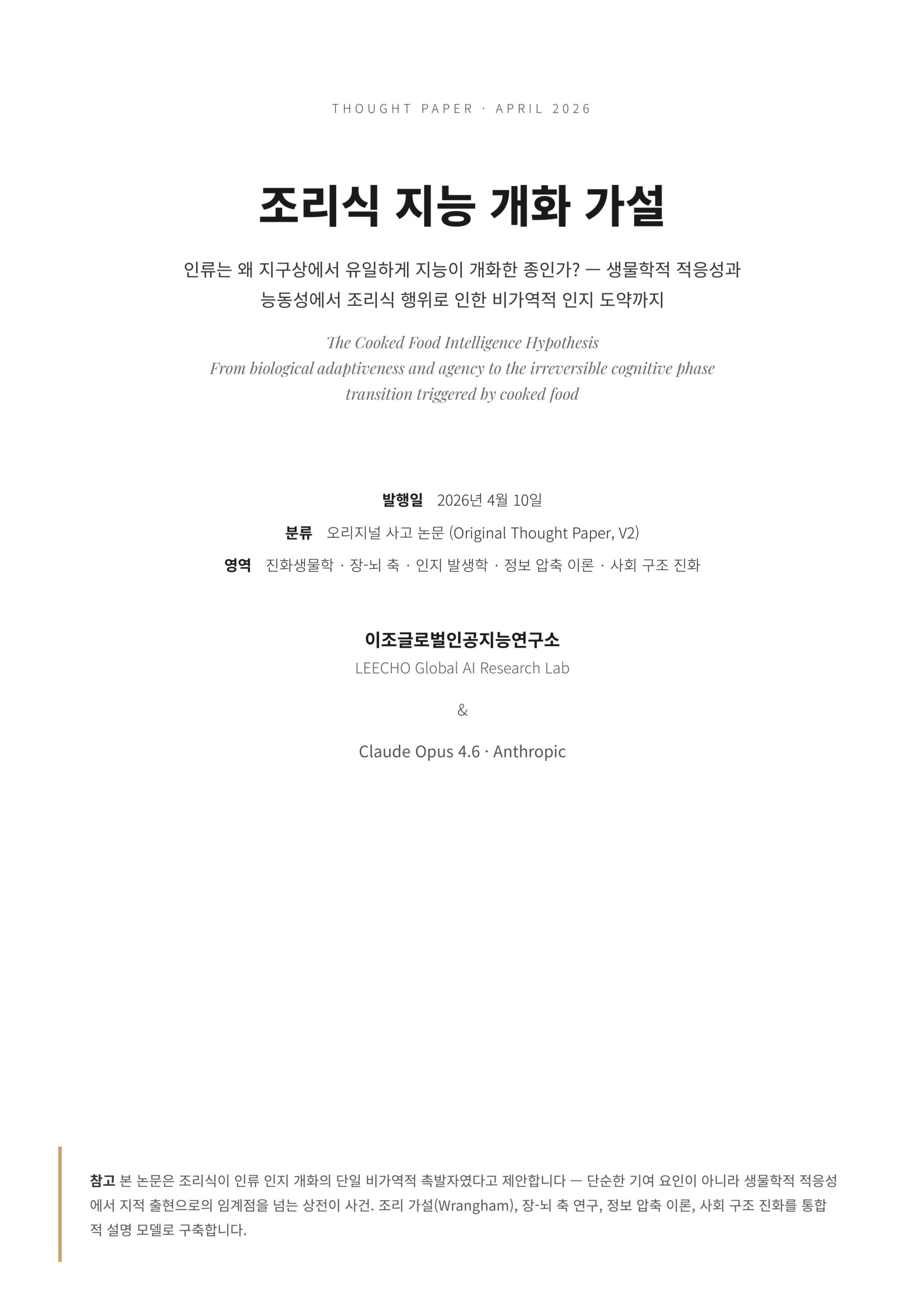 [15] 이조글로벌인공지능연구소. 인지의 전생과 현세. LEECHO Original Thought Paper, 2026.