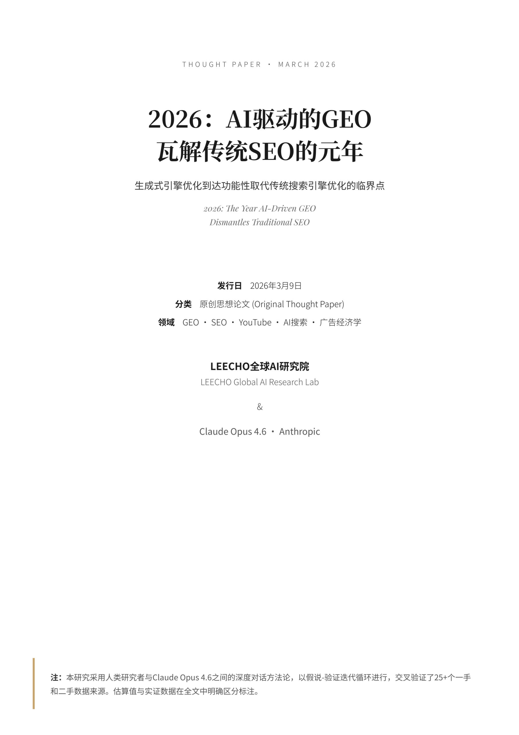 综合本文呈现的证据,2026年标志着GEO功能性取代SEO的元年——作为一场结构性转型。