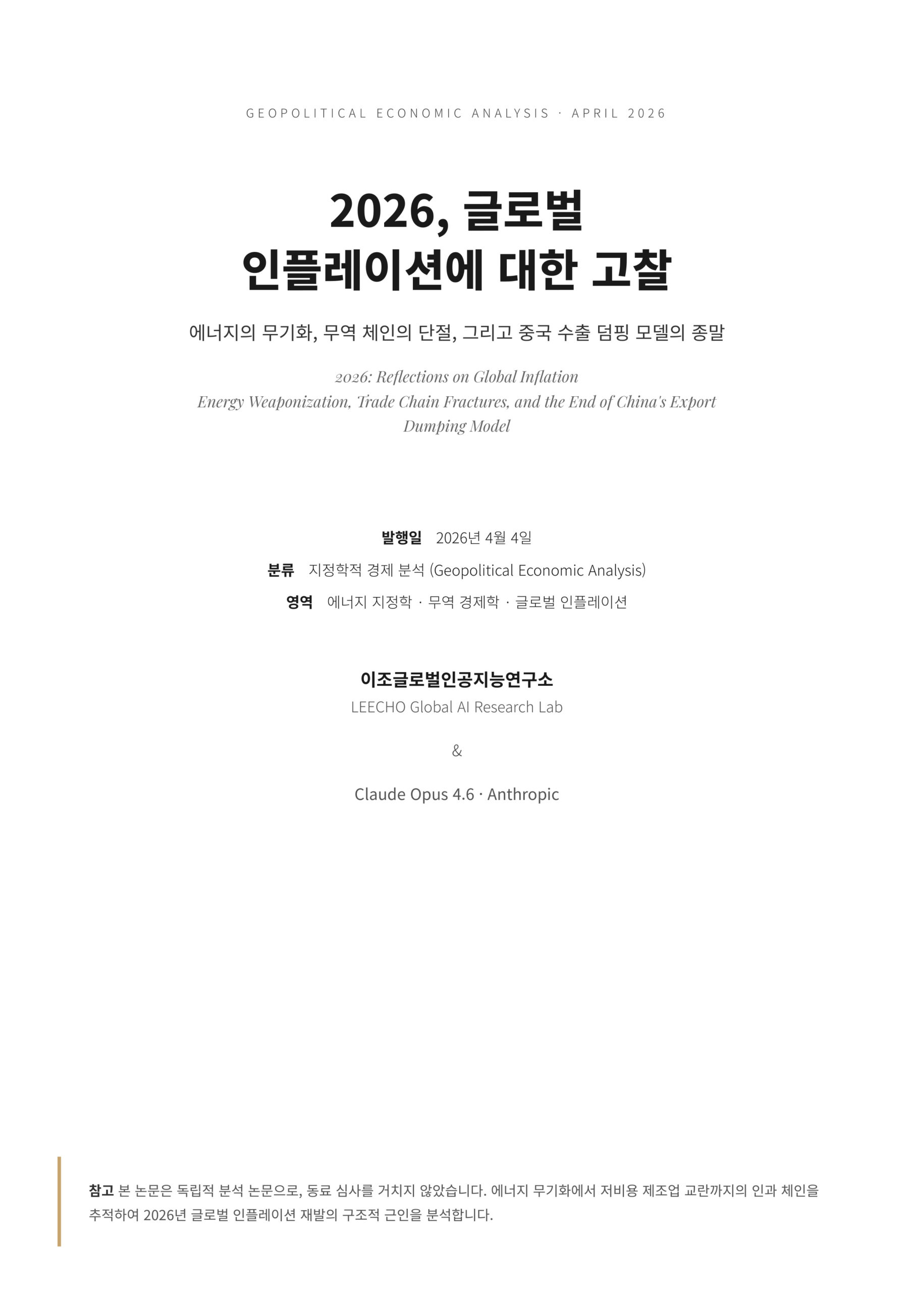중국의 수출 덤핑 모델은 순수하게 제조 실력으로 쟁취한 것이 아니다 — 지정학적 차익거래로 쟁취한 것이다. 차익거래 조건이 체계적으로 해체되면, 이 모델은 종점에 이른다. 2026년 글로벌 인플레이션의 재상승은 이번 에너지 재편의 직접적 결과이자, 구 질서의 와해와 새로운 구도 형성의 신호다. 이것은 주기적 변동이 아니라 구조적 변곡점이다.