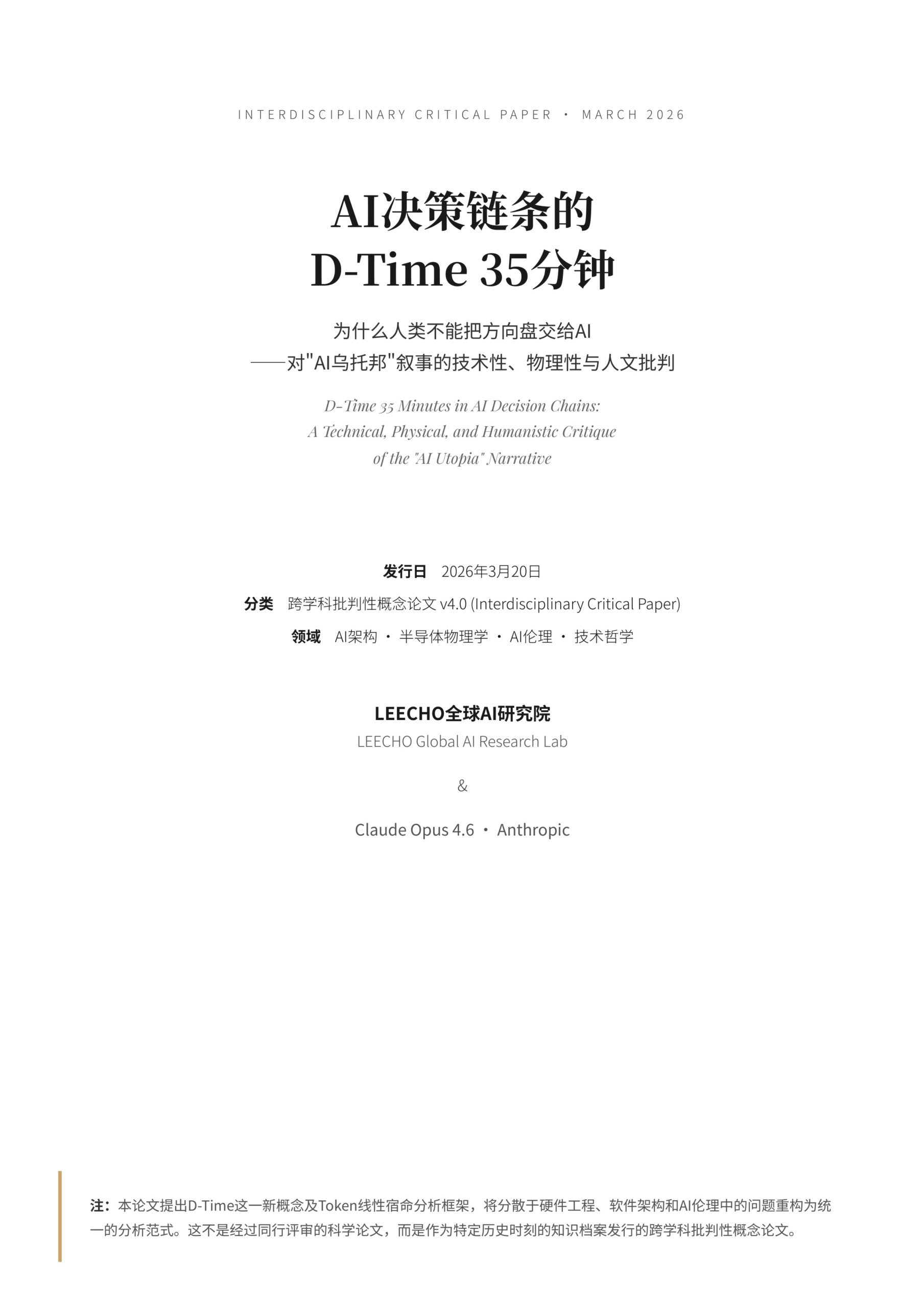 LEECHO Global AI Research Lab · Anthropic Claude Opus 4.6 Collaborative Research