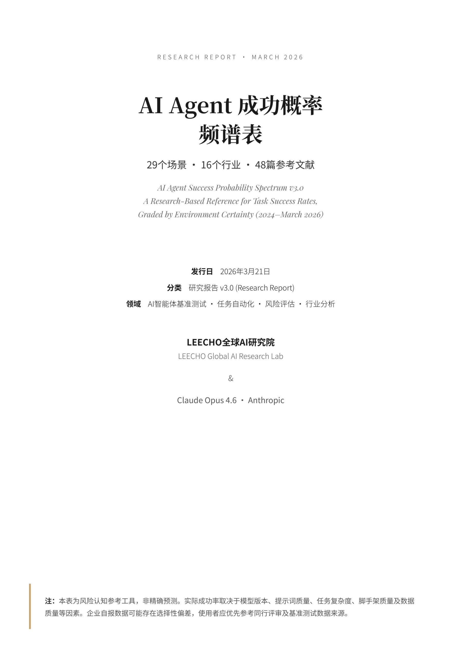 本表为风险认知参考工具,非精确预测。实际成功率受模型版本、Prompt 质量、任务复杂度、脚手架质量、数据质量等因素影响。所有标注 🏢 的数据为公司自报告,可能存在选择性偏差。AIME 排行榜满分均为自报告(0独立验证)。SWE-bench Verified 已被证实存在数据污染。使用者应优先参考 🔬 和 📊 标记的数据源。欢迎基于新数据持续修订。转载请注明出处。