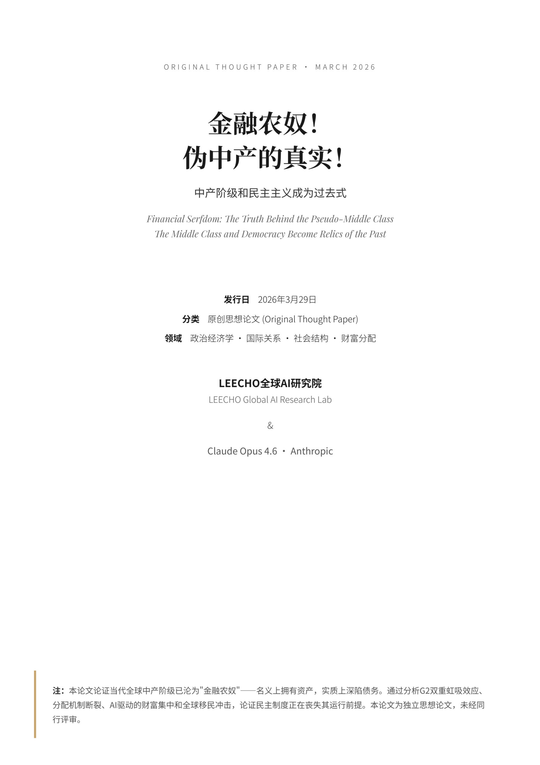 Original Thought Paper · March 2026 金融农奴!伪中产的真实! 中产阶级和民主主义成为过去式 이조글로벌인공지능연구소·LEECHO Global AI Research Lab &Claude Opus 4.6 · Anthropic 2026年3月29日…