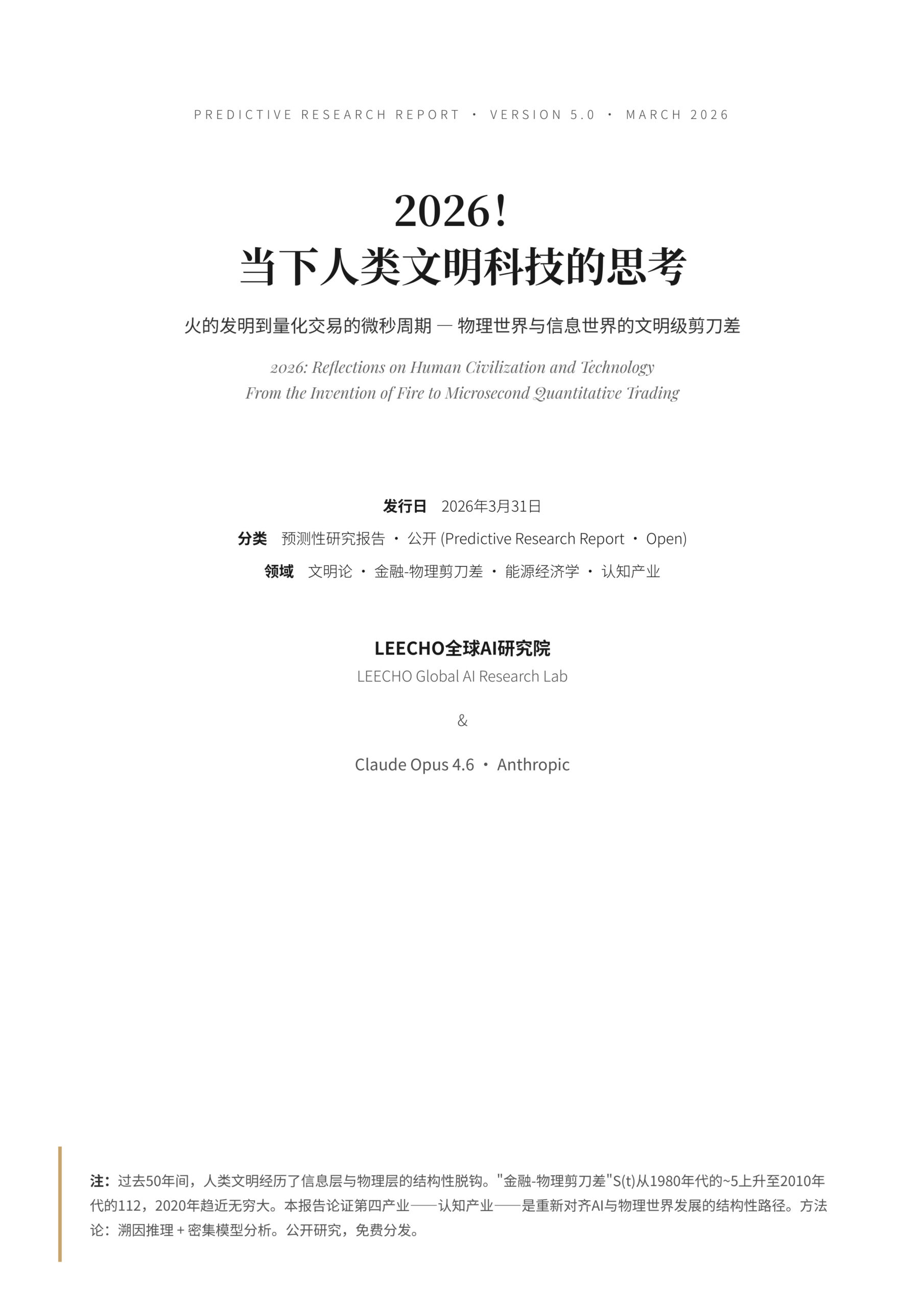 Predictive Research Report · V5 · March 2026 2026!当下人类文明科技的思考 火的发明到量化交易的微秒周期——物理世界与信息世界的文明级剪刀差 2026: Reflections on Human Civilization and TechnologyF…