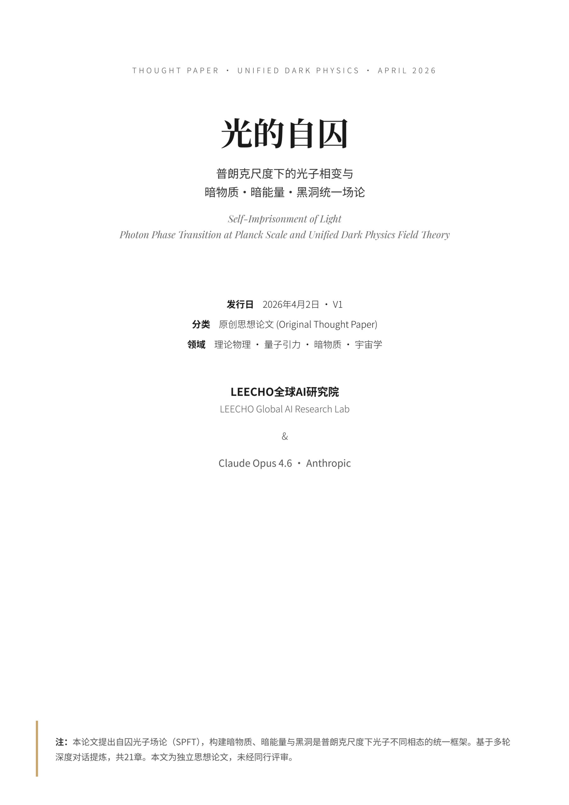 Thought Paper · Unified Dark Physics · V1 光的自囚 普朗克尺度下的光子相变与暗物质·暗能量·黑洞统一场论 Self-Imprisonment of Light: Photon Phase Transition at Planck Scaleand Unifi…