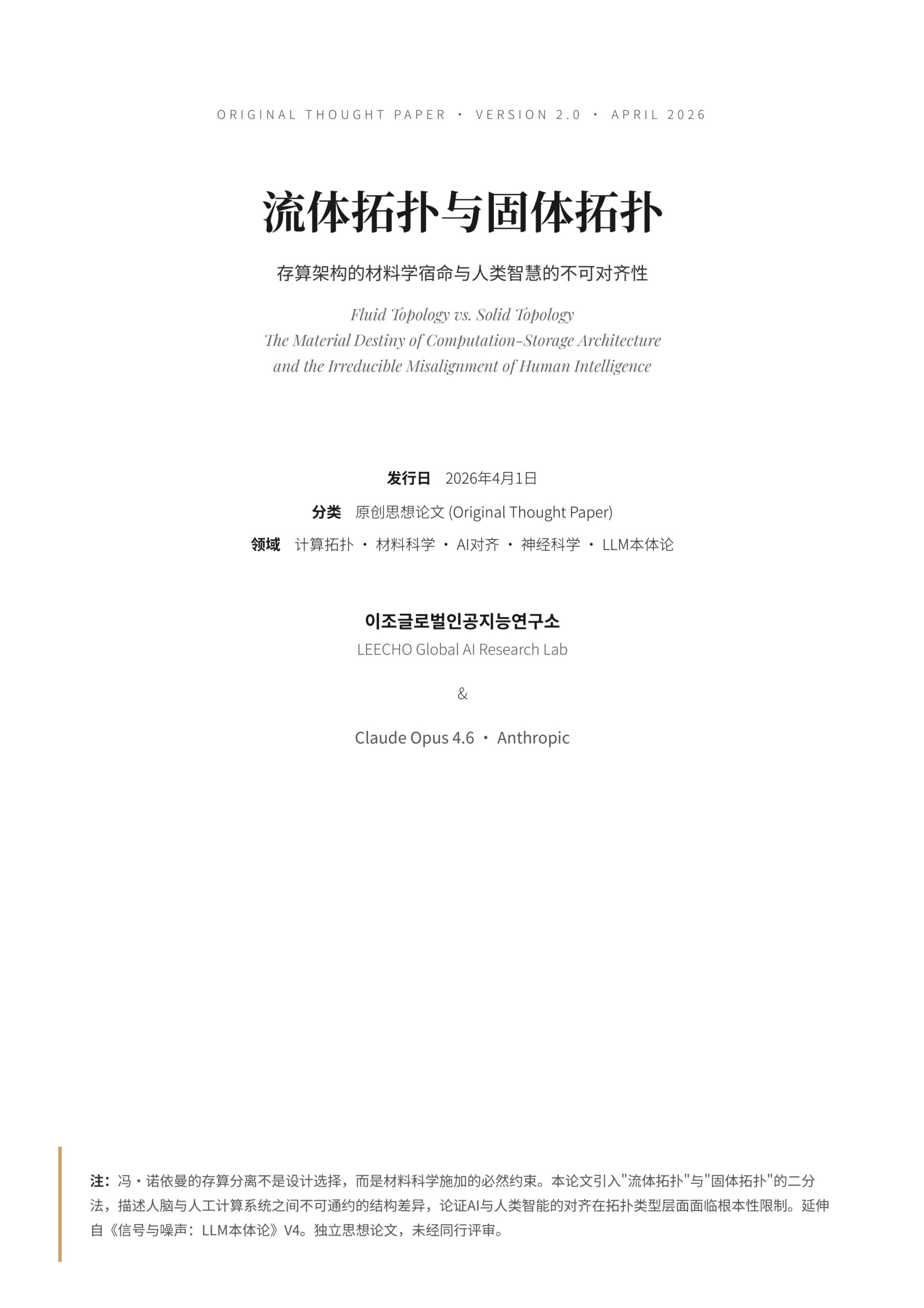 Original Thought Paper · V2 · April 2026 流体拓扑与固体拓扑 存算架构的材料学宿命与人类智慧的不可对齐性 Fluid Topology vs. Solid Topology:The Material Destiny of Computation-Storage…