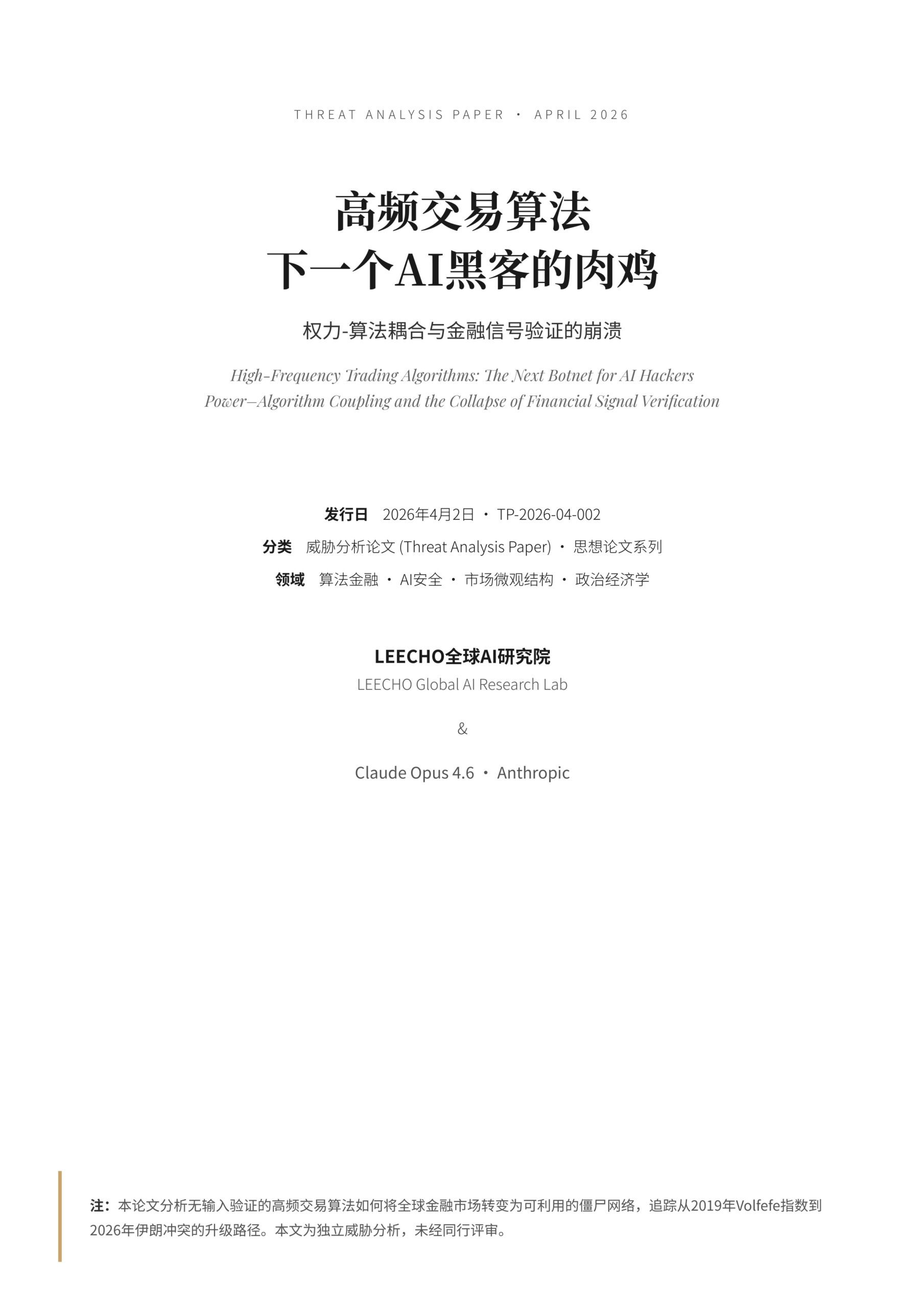 ⚠ THREAT ANALYSIS PAPER High-Frequency Trading Algorithms: The Next Botnet for AI Hackers 高频交易算法下一个AI黑客的肉鸡 当量化算法以毫秒级速度从社交媒体抓取交易信号,而这些信号的来源验证机制几乎为零——全球…