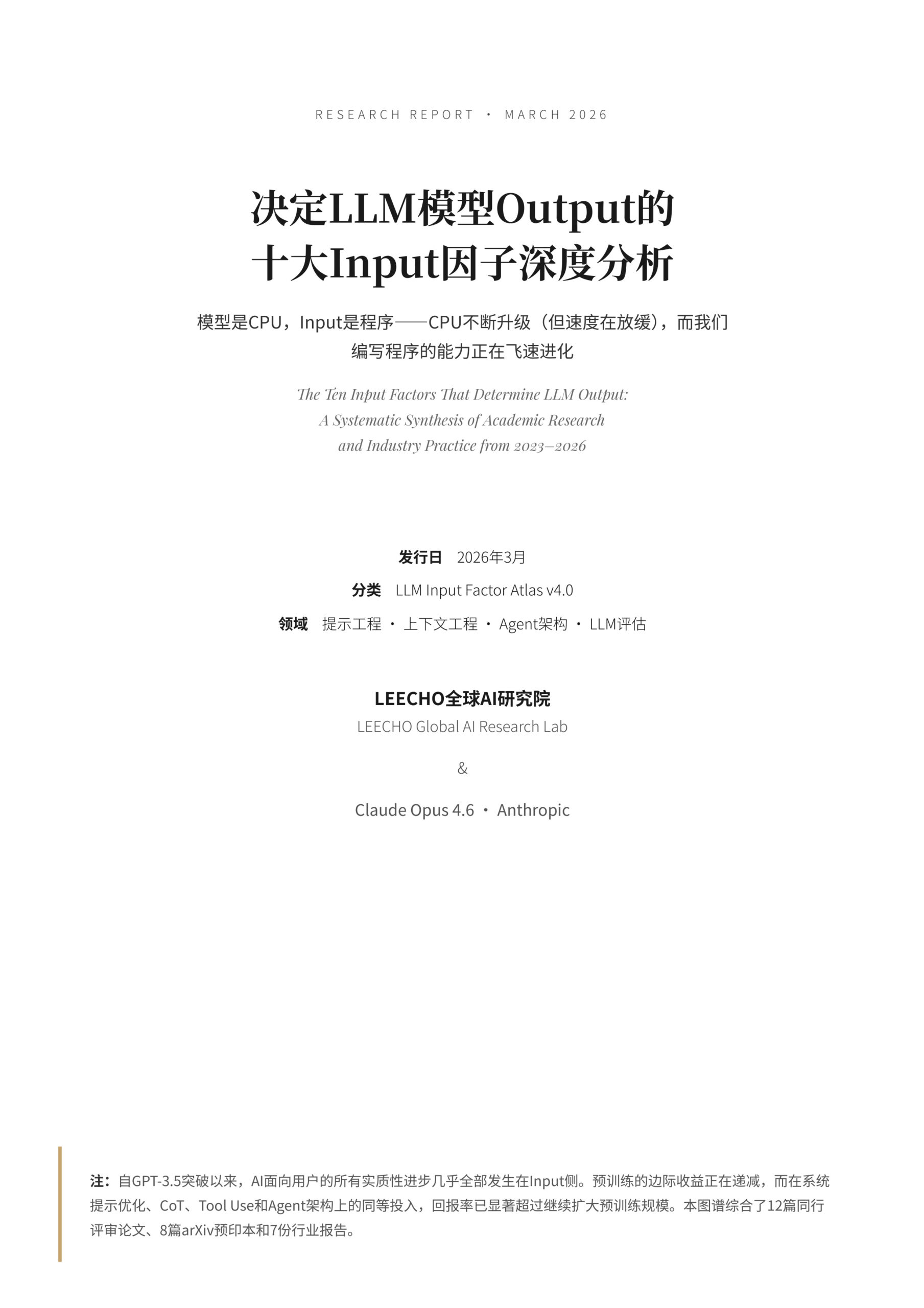 LLM INPUT FACTOR ATLAS · V4 决定LLM模型Output的十大Input因子深度分析 基于 2023–2026 年学术研究与产业实践的系统性整理。模型是 CPU,Input 是程序——CPU 在持续升级(但速度放缓),而我们编写程序的能力在飞速进化。 12篇同行评审论文 […