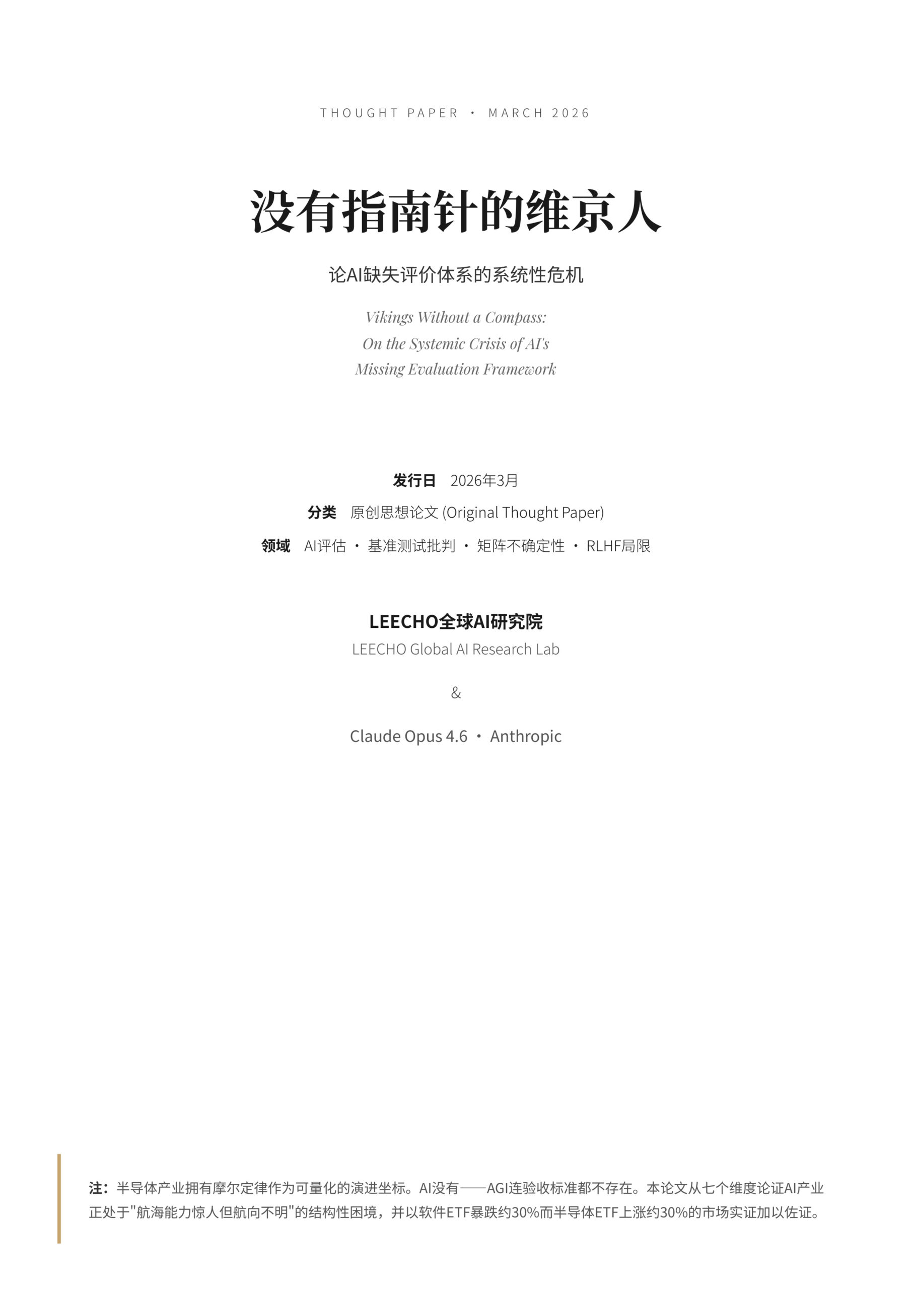 技 术 哲 学 论 文 没有指南针的维京人论AI缺失评价体系的系统性危机 “维京人跨越大西洋抵达北美,没有指南针、没有六分仪—— 他们凭借星象与海浪的模式识别完成壮举。 但每一次航行都是概率事件:有人到达新大陆,有人消失在浓雾中。 今天的AI,正是数字时代的维京长船。” Th…