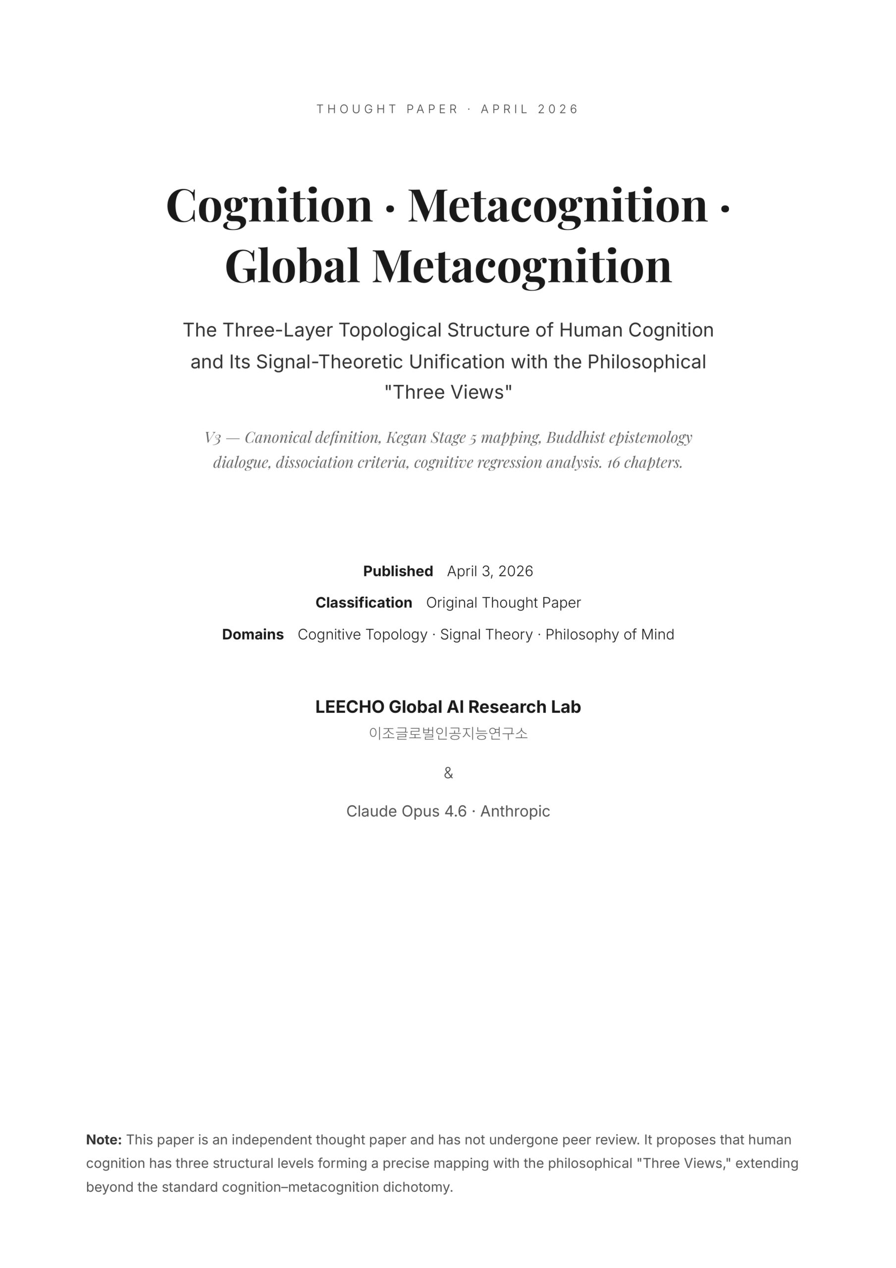 Original Thought Paper · Cognitive Topology V3 · 2026.04.03 Cognition · Metacognition · Global Metacognition The three-layer topological structure of …