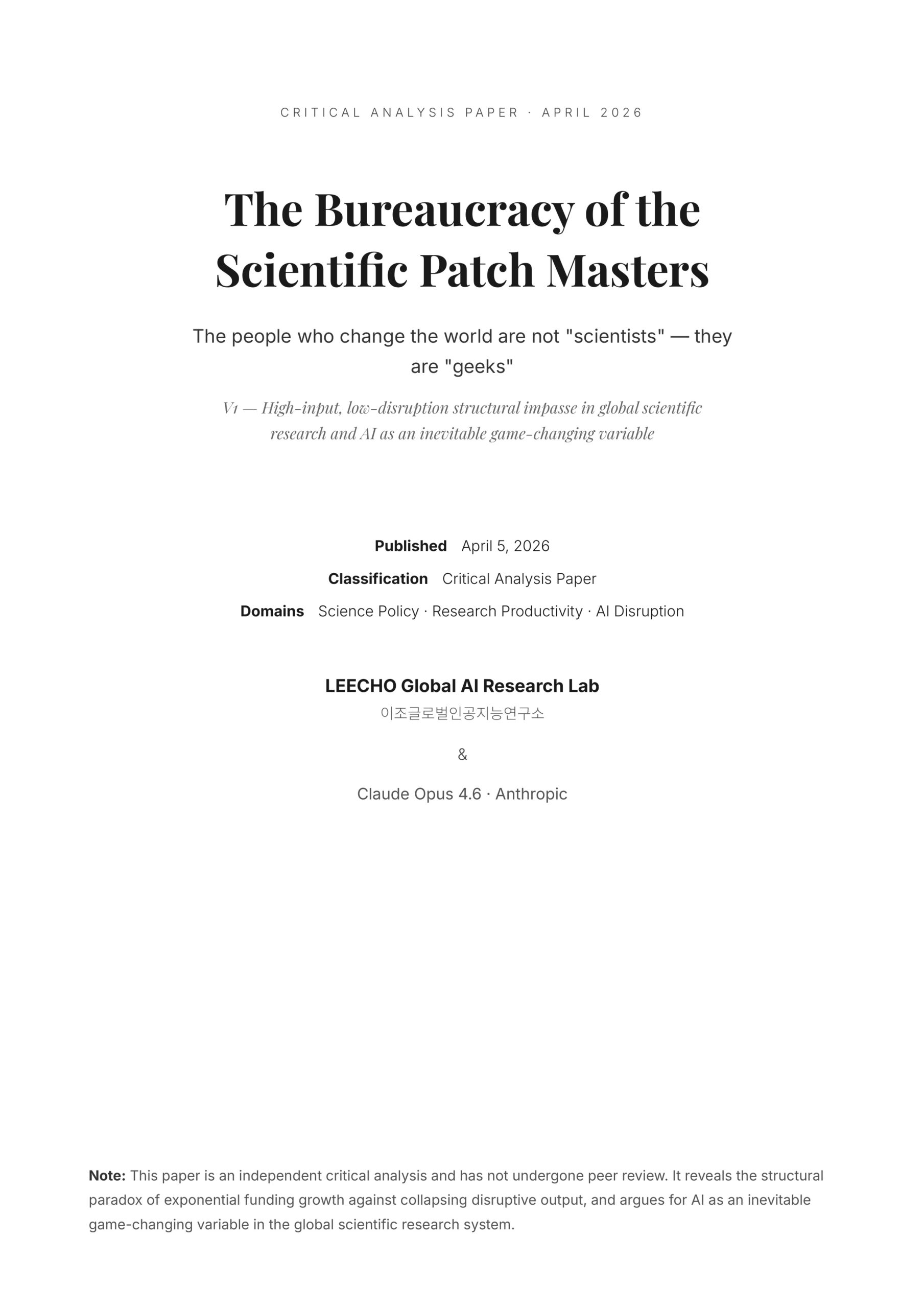 LEECHO Global AI Research Lab · Thought Paper The Bureaucracy of theScientific Patch Masters The people who change the world are not “scientists…