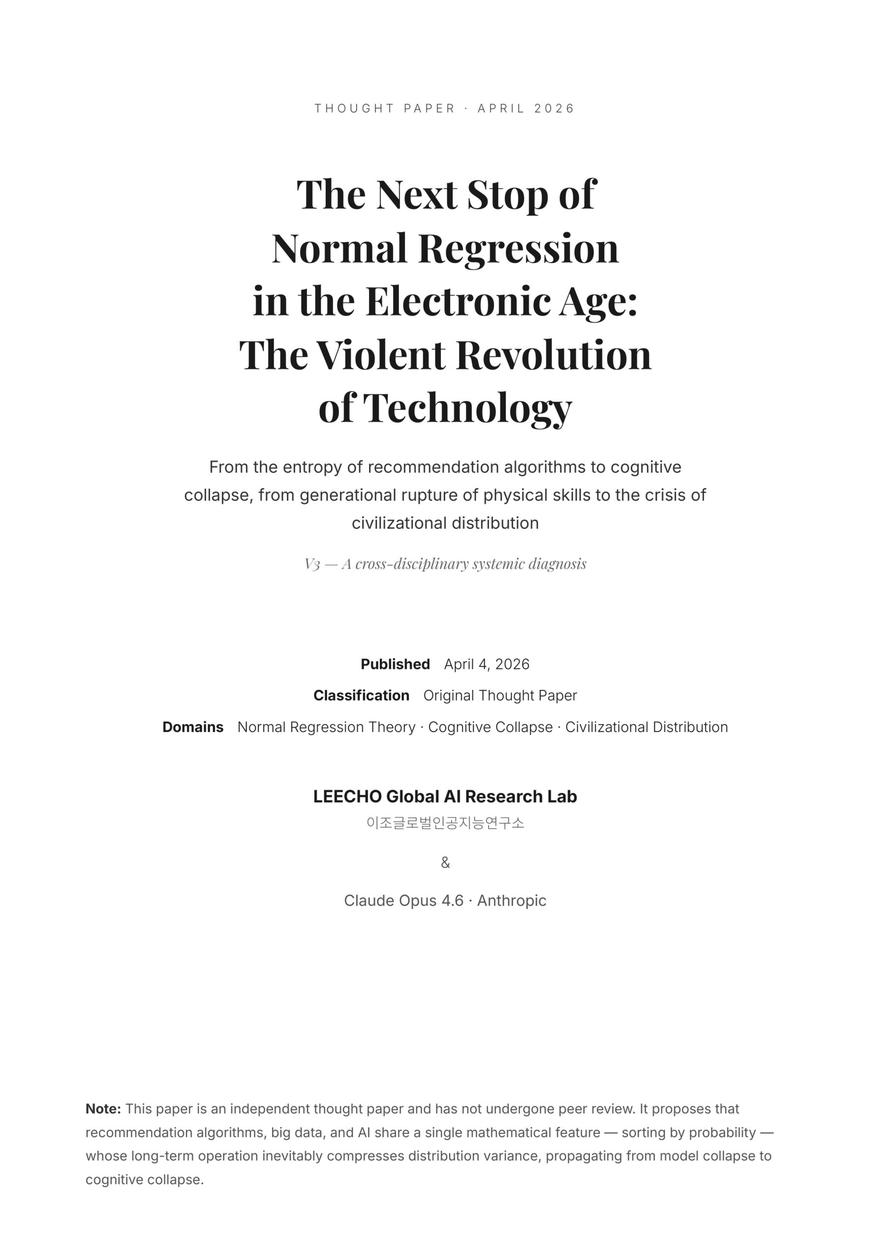 Original Thought Paper · April 2026 The Next Stop of Normal Regressionin the Electronic Age:The Violent Revolution of Technology From the entropy of r…