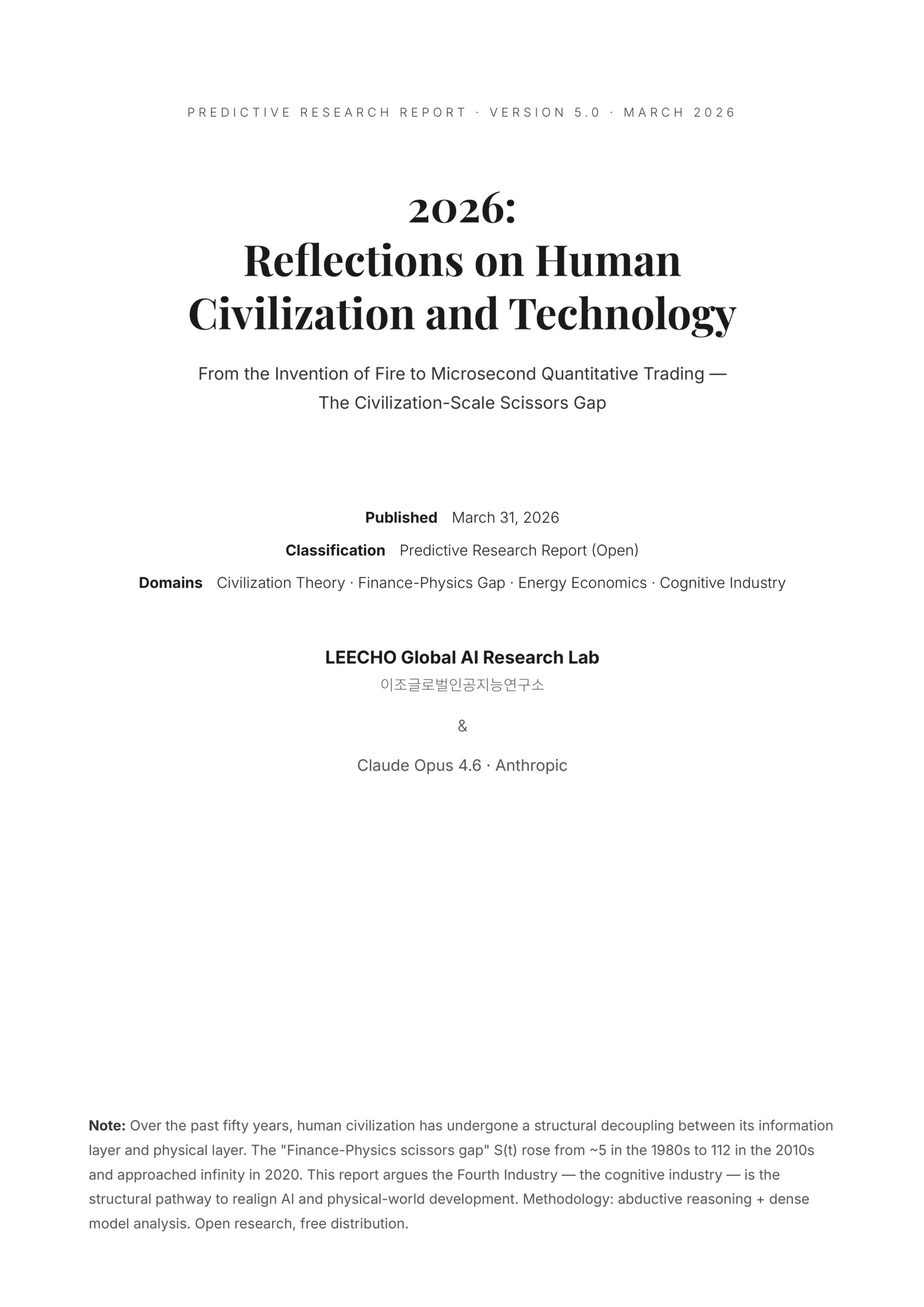 Predictive Research Report · V5 · March 2026 2026:Reflections on HumanCivilization and technology From the Invention of Fire to Microsecond Quantitati…