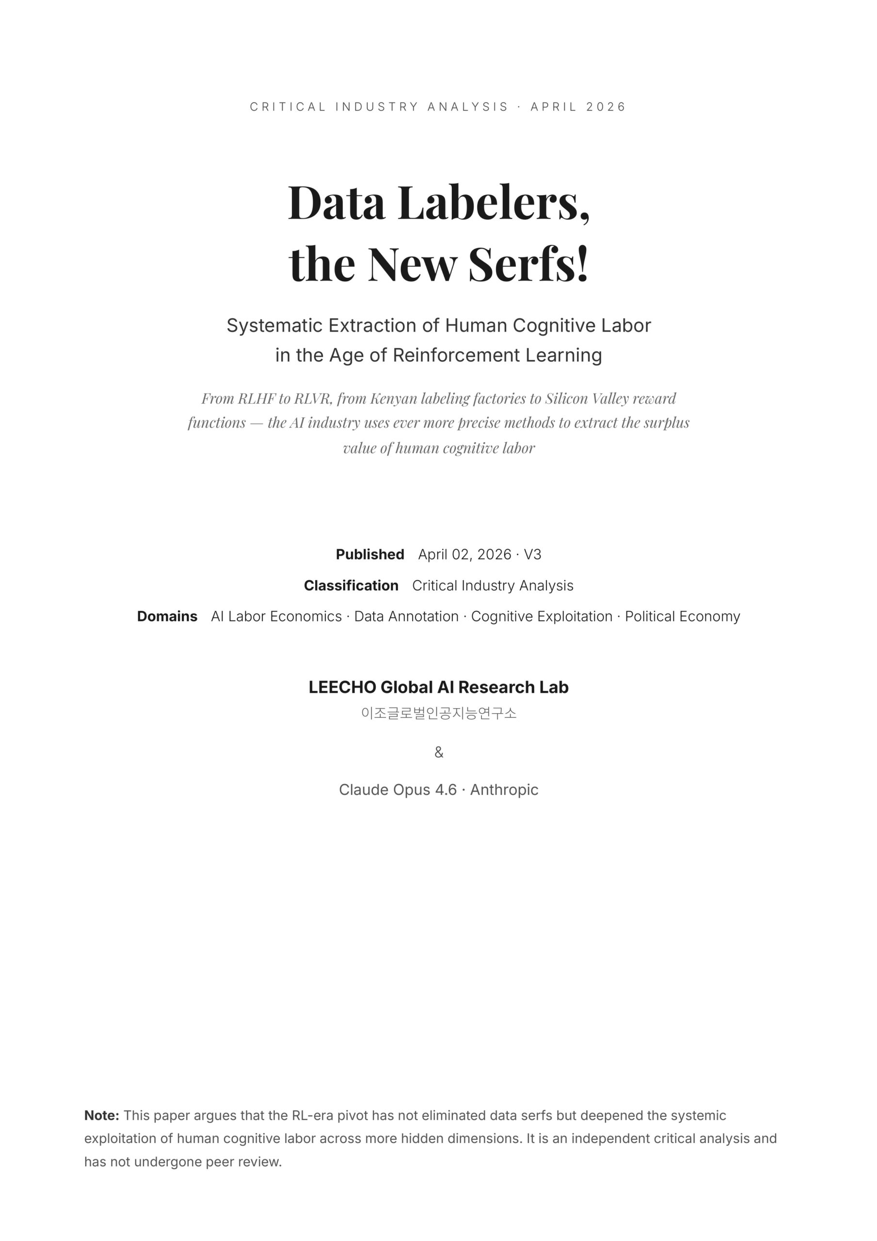 Critical Industry Analysis Data Labelers, the New Serfs! From RLHF to RLVR, from Kenyan labeling factories to Silicon Valley reward functions — the AI…