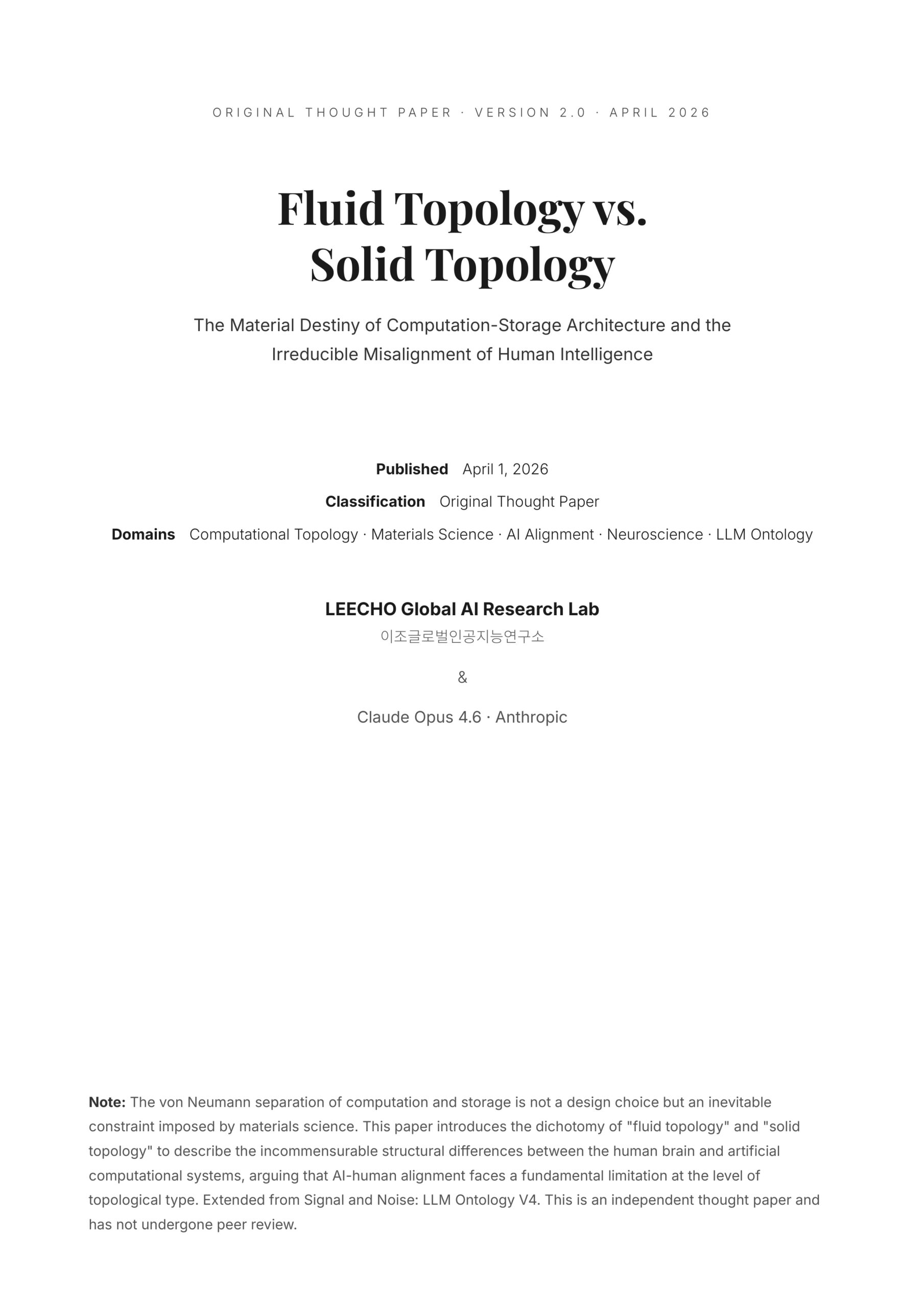 Original Thought Paper · V2 · April 2026 Fluid Topology vs.Solid Topology The Material Destiny of Computation-Storage Architectureand the Irreducible …