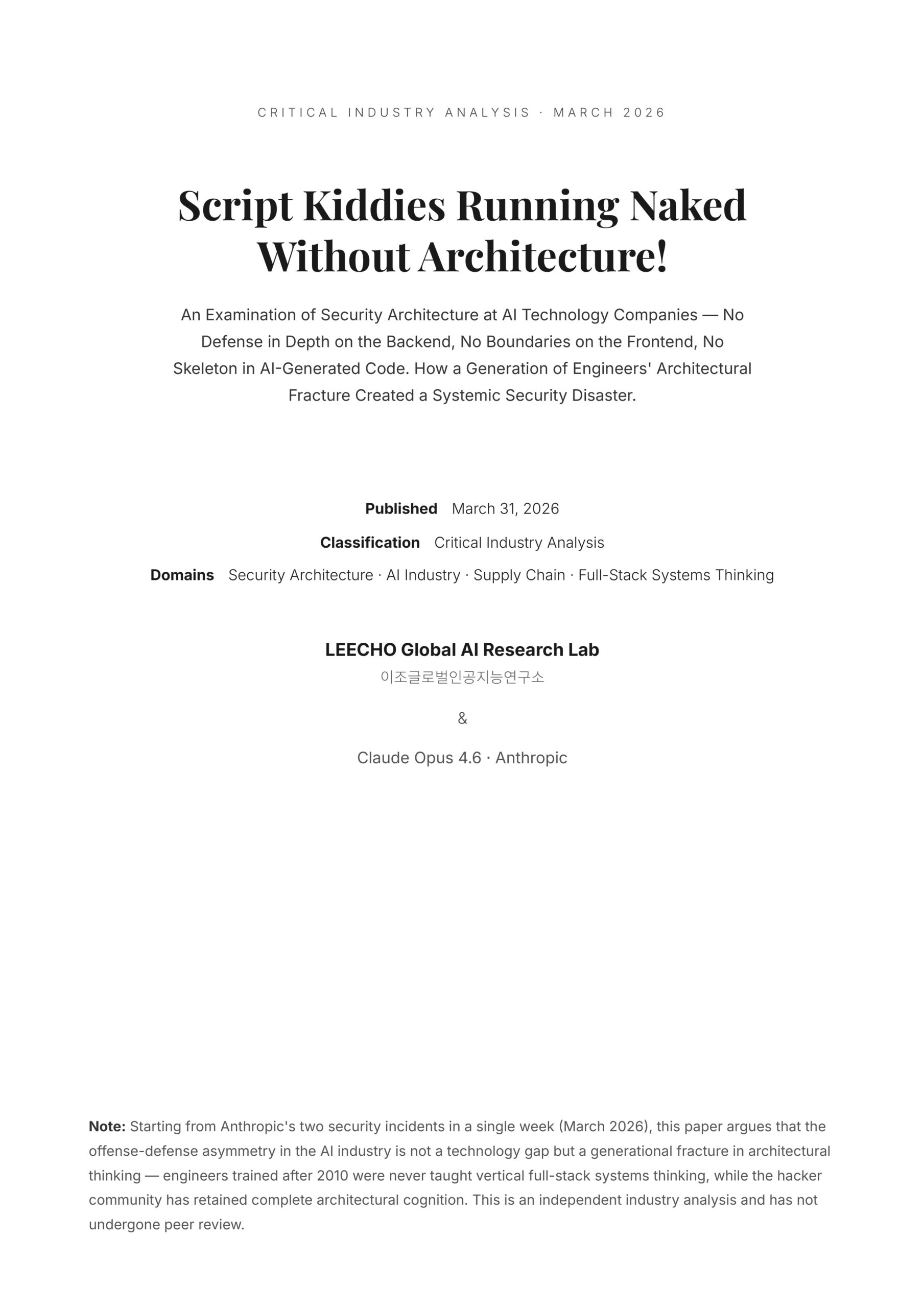 Critical Industry Analysis Script Kiddies Running NakedWithout Architecture! An Examination of Security Architecture at AI Technology Companies — No D…