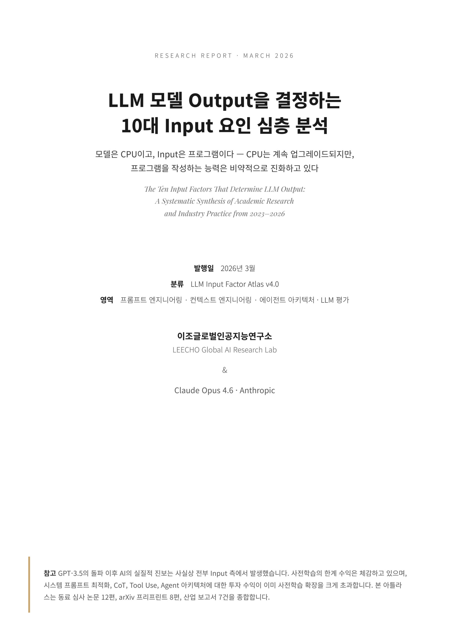 단, 강조해야 할 점: 사전훈련은 여전히 모델의 “능력 상한”을 정의하며, Input 엔지니어링은 특정 과제에서 그 상한의 몇 퍼센트를 발휘할 수 있는지를 결정한다. 양자는 대체 관계가 아니라, “천장”과 “실제 높이”의 관계이다.