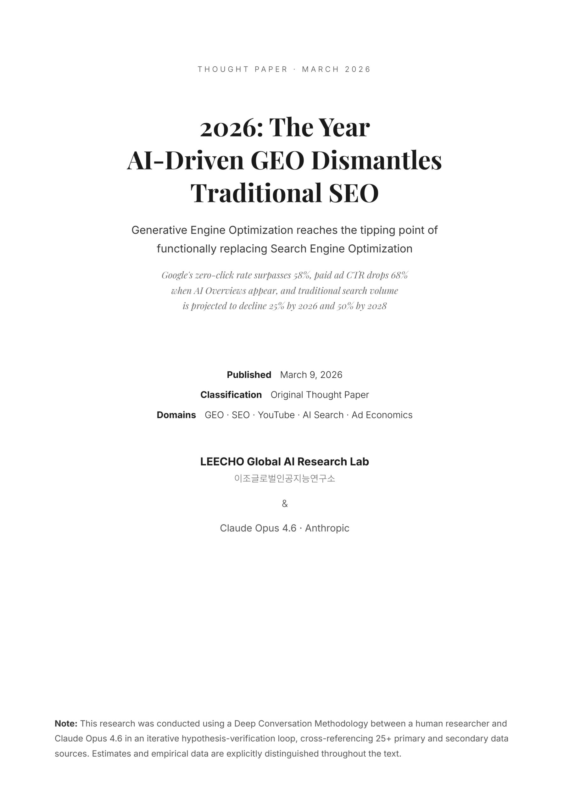 LEECHO Global AI Research Lab · 2026 Thought Paper 2026: The Year AI-Driven GEODismantles Traditional SEO Search rankings and display impressions are …