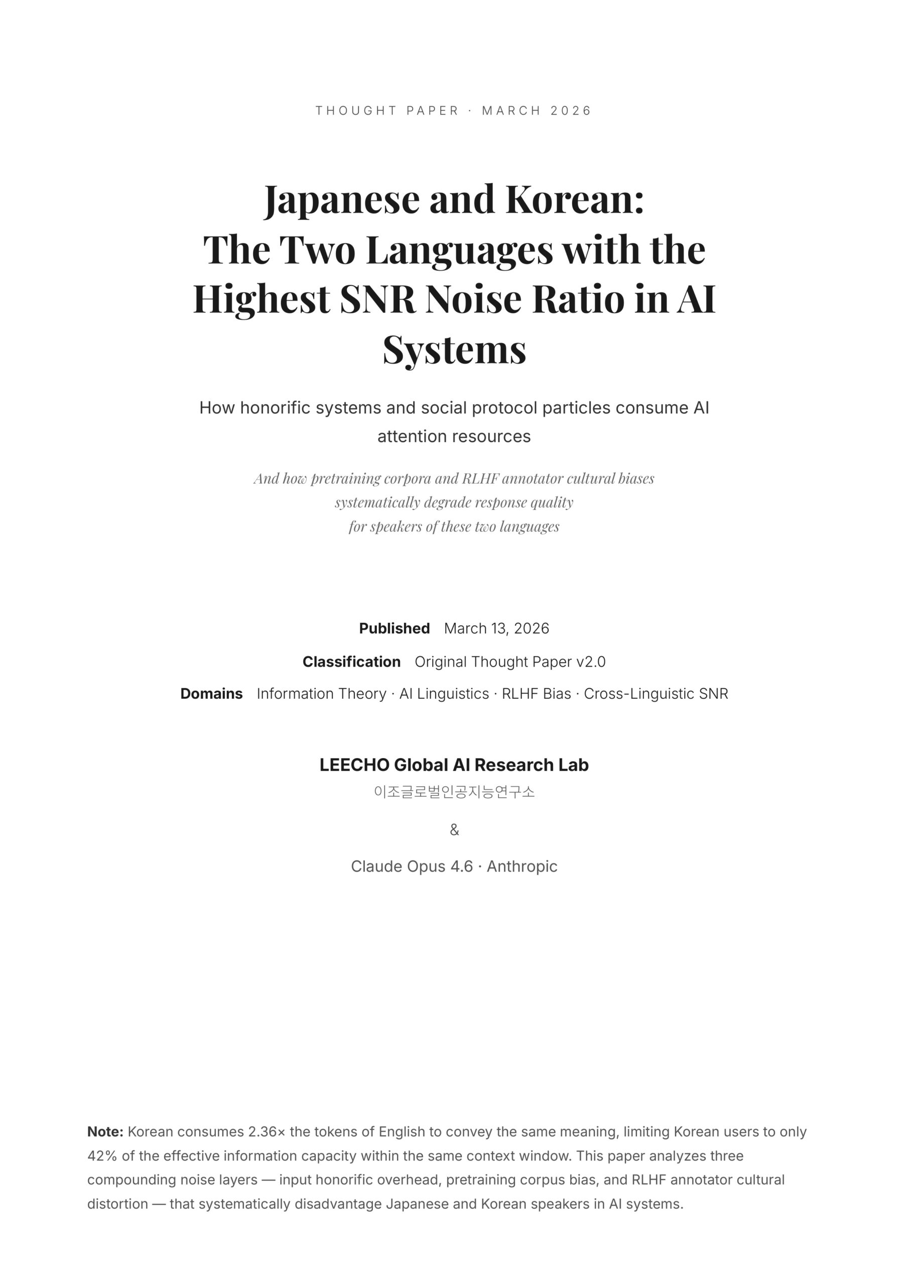 Information Theory × AI Linguistics × RLHF Research Japanese and Korean:The Two Languages with the HighestSNR Noise Ratio in AI Systems How honorific …