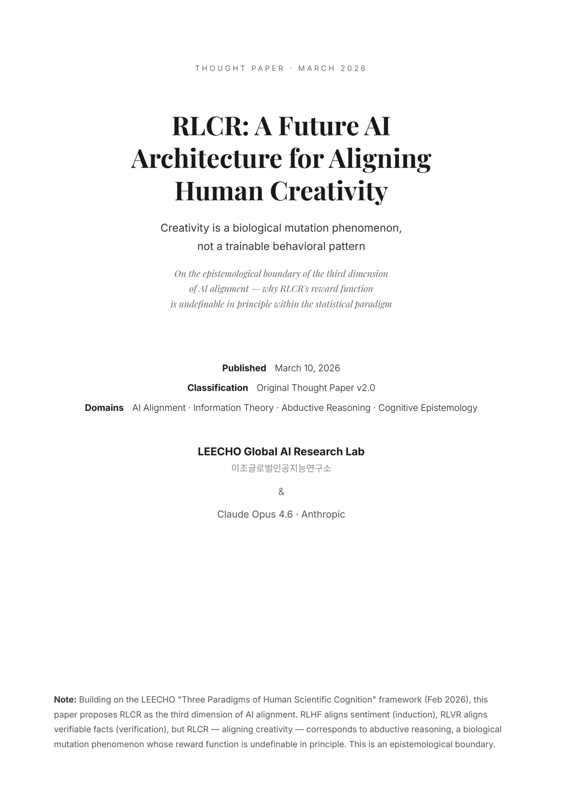 Original Thought Paper · Version 2.0 · March 2026 RLCR: A Future AI Architecturefor Aligning Human Creativity Human language is an information carrier…