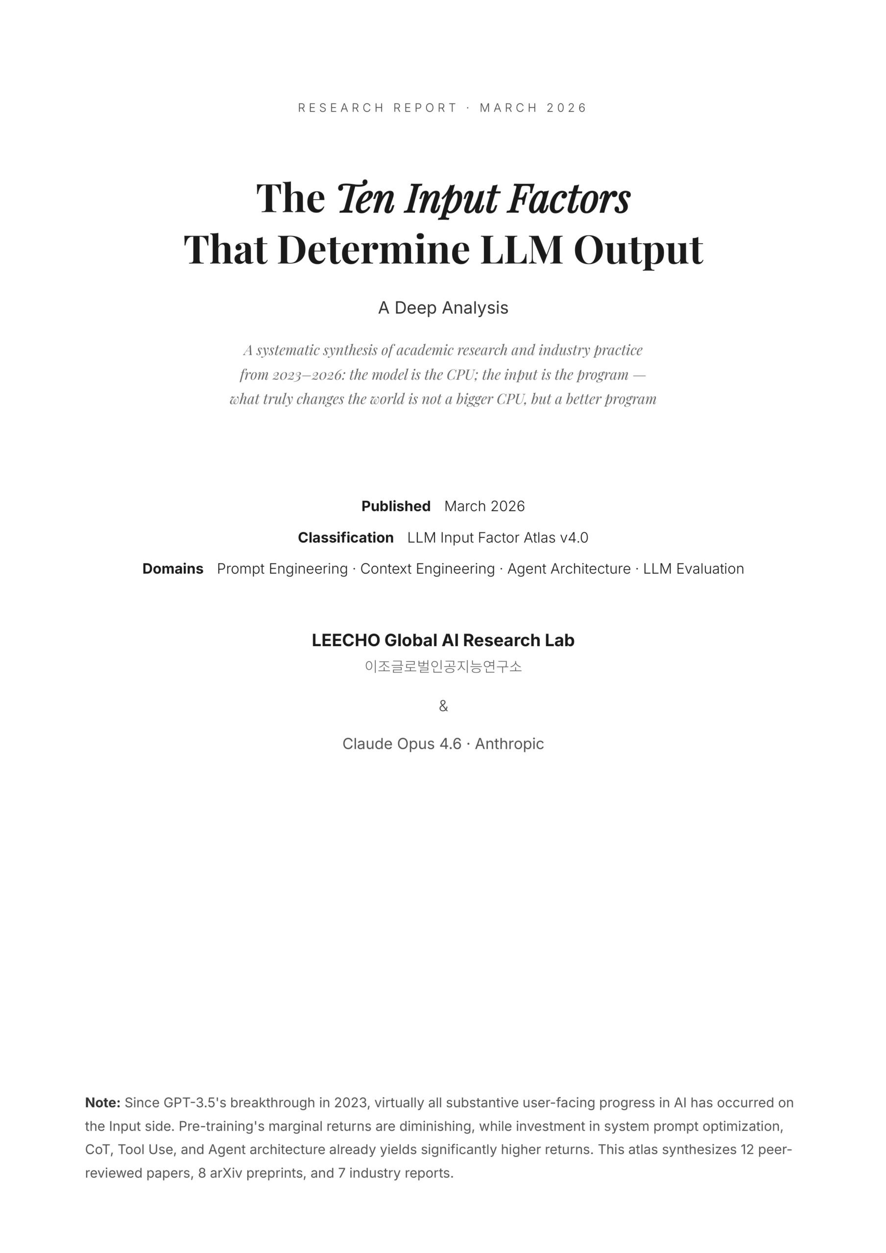 LLM INPUT FACTOR ATLAS · V4 The Ten Input FactorsThat Determine LLM Output A systematic synthesis of academic research and industry practice from 2023…