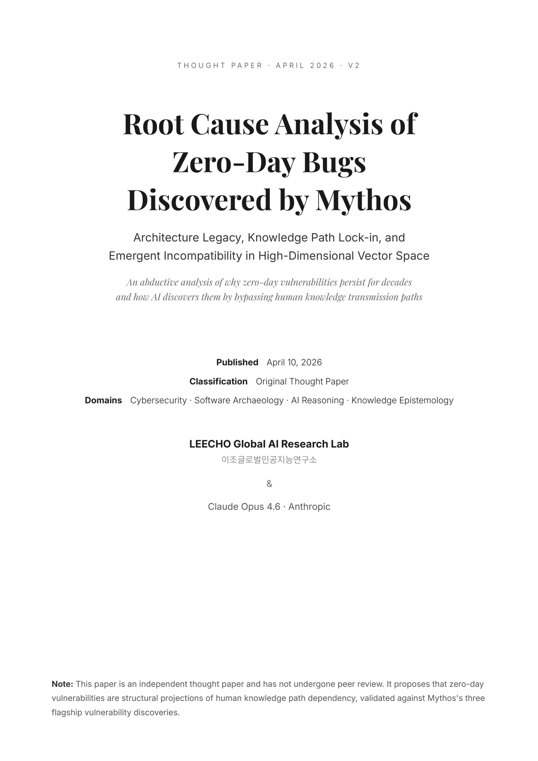 | 2026 | Mythos detects distribution discontinuity between the 2003 layer and the 2010 layer in vector space | Path-independent matrix operations bypass generational lock-in |