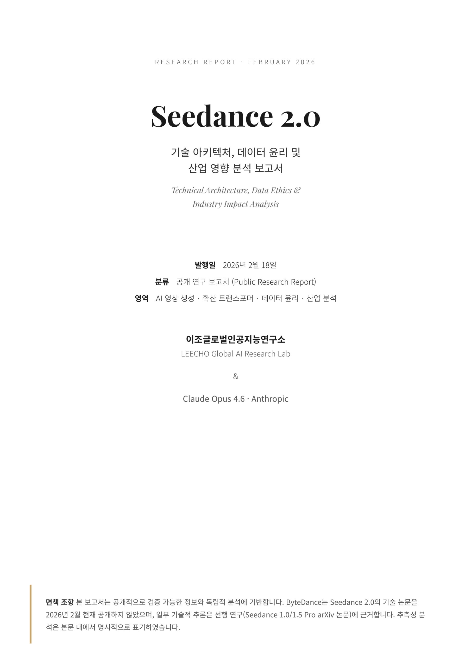본 보고서는 Seedance 2.0의 기술 아키텍처, 데이터 윤리 문제, 중국 AI 산업의 구조적 동인, 그리고 실사용 테스트를 통해 확인된 기술적 한계를 종합적으로 분석한다. 모든 주장은 공개 출처 기반의 사실 확인(Fact-Check)을 거쳤으며, 검증 불가능한 추론은 명시적으로 구분하였다.